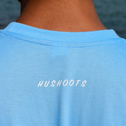 Un T-Shirt bleu à col rond avec un logo sobre sur le coeur !